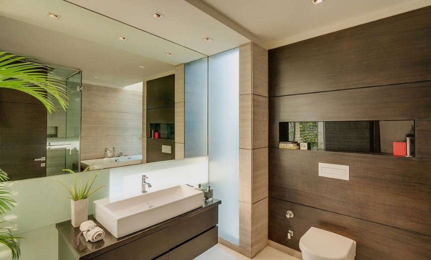 Невероятно роскошно будет выглядеть шоколадный цвет в современной уборной.