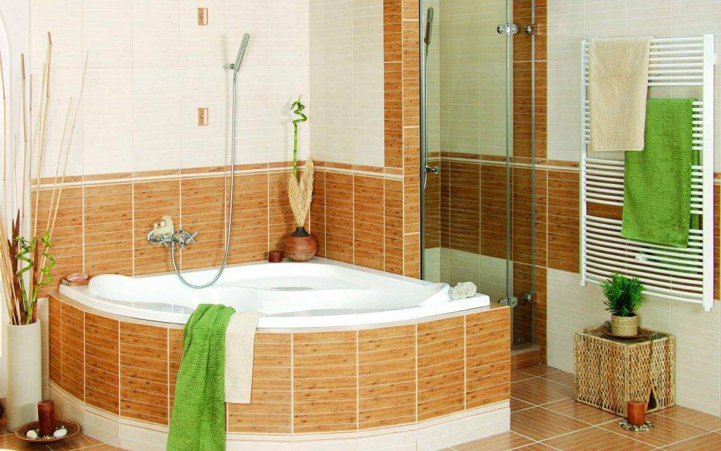 Чтобы улучшить дизайн маленькой ванной комнаты, угловые ванны следует подбирать под цвет остальной сантехники, либо с прозрачной передней стенкой.