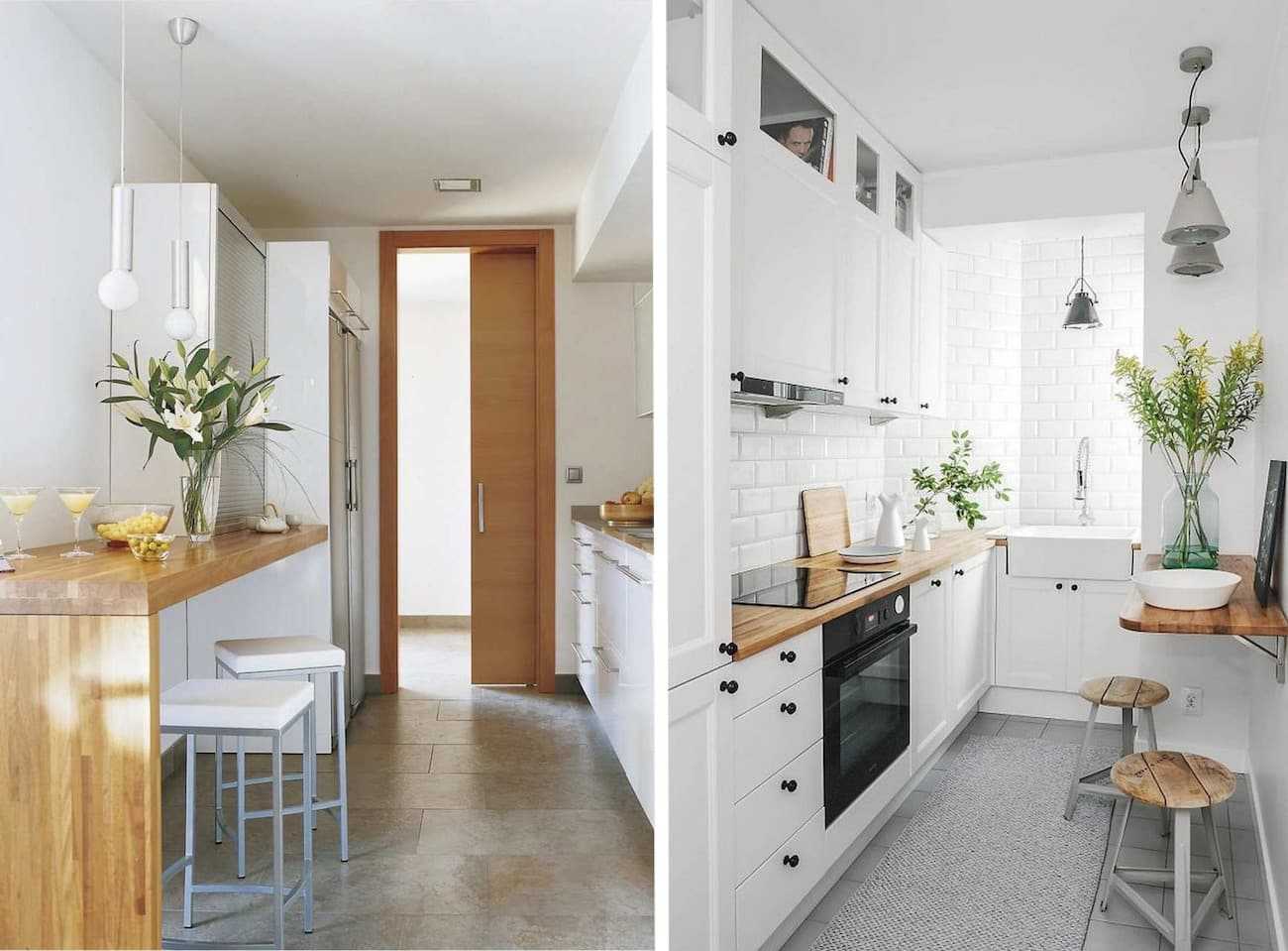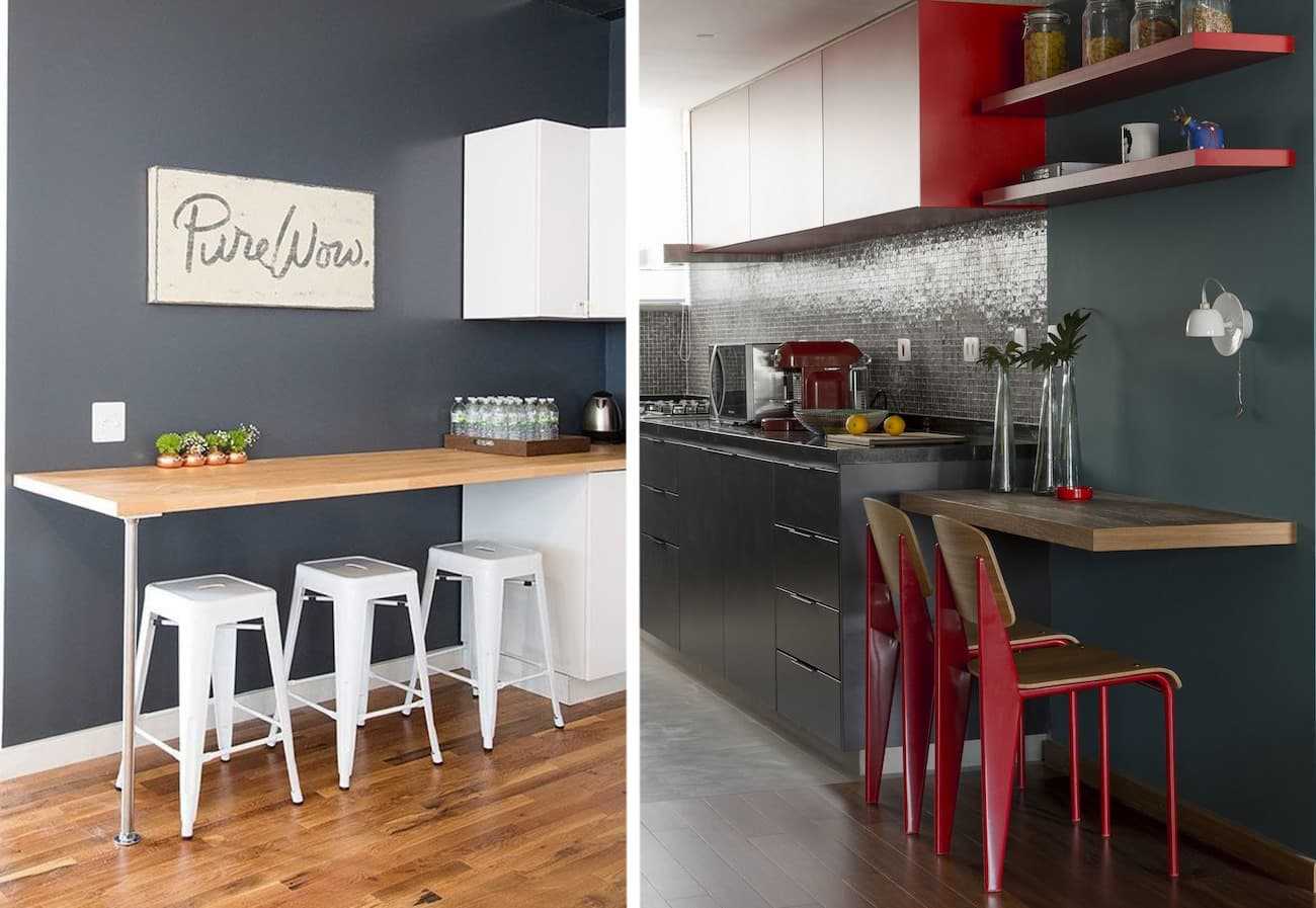 Что касается стола в узкой кухне, то его нужно либо заменять барной стойкой (о чем мы писали выше), либо делать откидным.