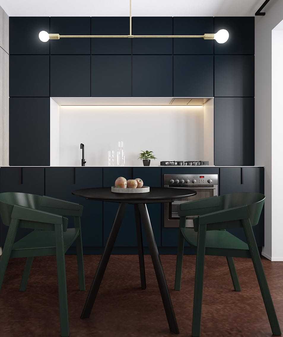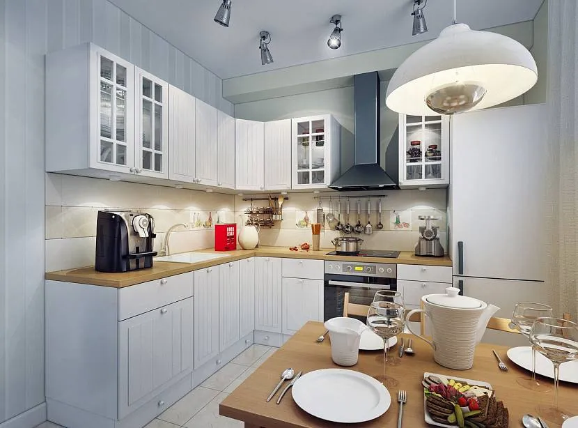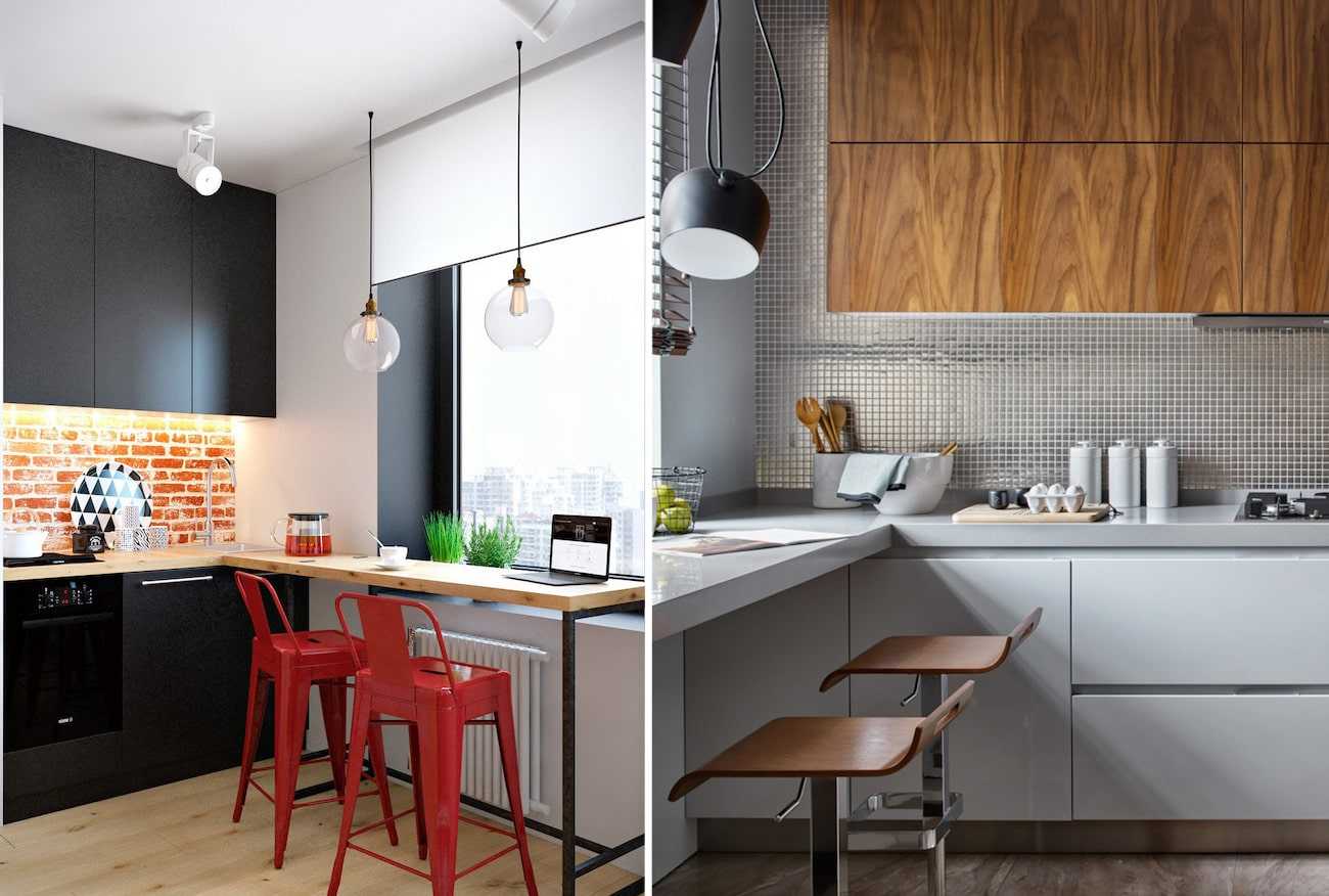 Совет! Если вы планируете создать модный дизайн маленькой кухни 2020, следует продумать функциональную роль углов. Мебельный ансамбль подбирают компактных размеров без громоздких декоративных элементов.