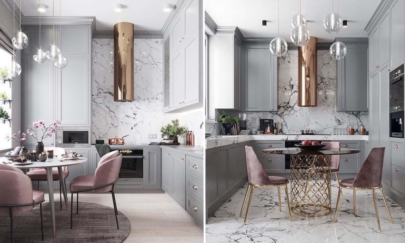 Устанавливают рядом высокие стулья, и романтическая обстановка обеденной зоны становится жемчужиной всего кухонного интерьера 2020.