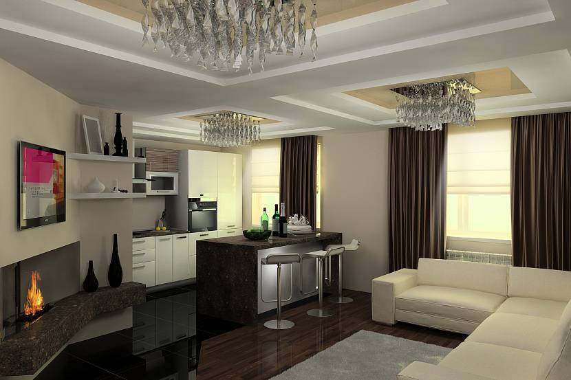 - для обеденной и рабочей зоны желательно устанавливать барную стойку;