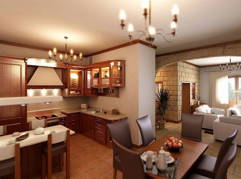Проще продумать дизайн в кухне-столовой, если совмещены две габаритные комнаты.