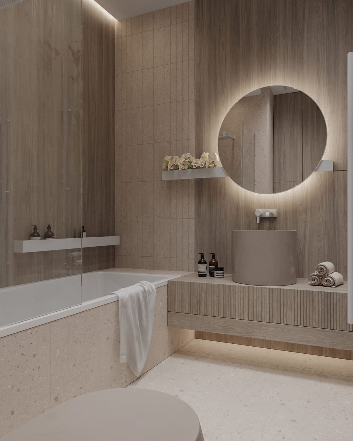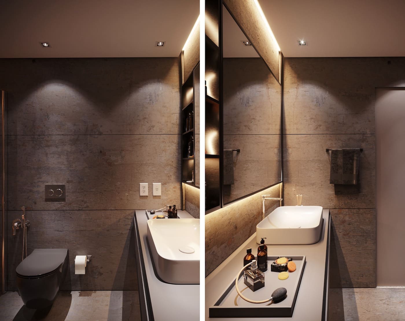 Такие минималистичные световые акценты создают приятную атмосферу в небольшой ванной комнате и положительно сказываются на самочувствии.