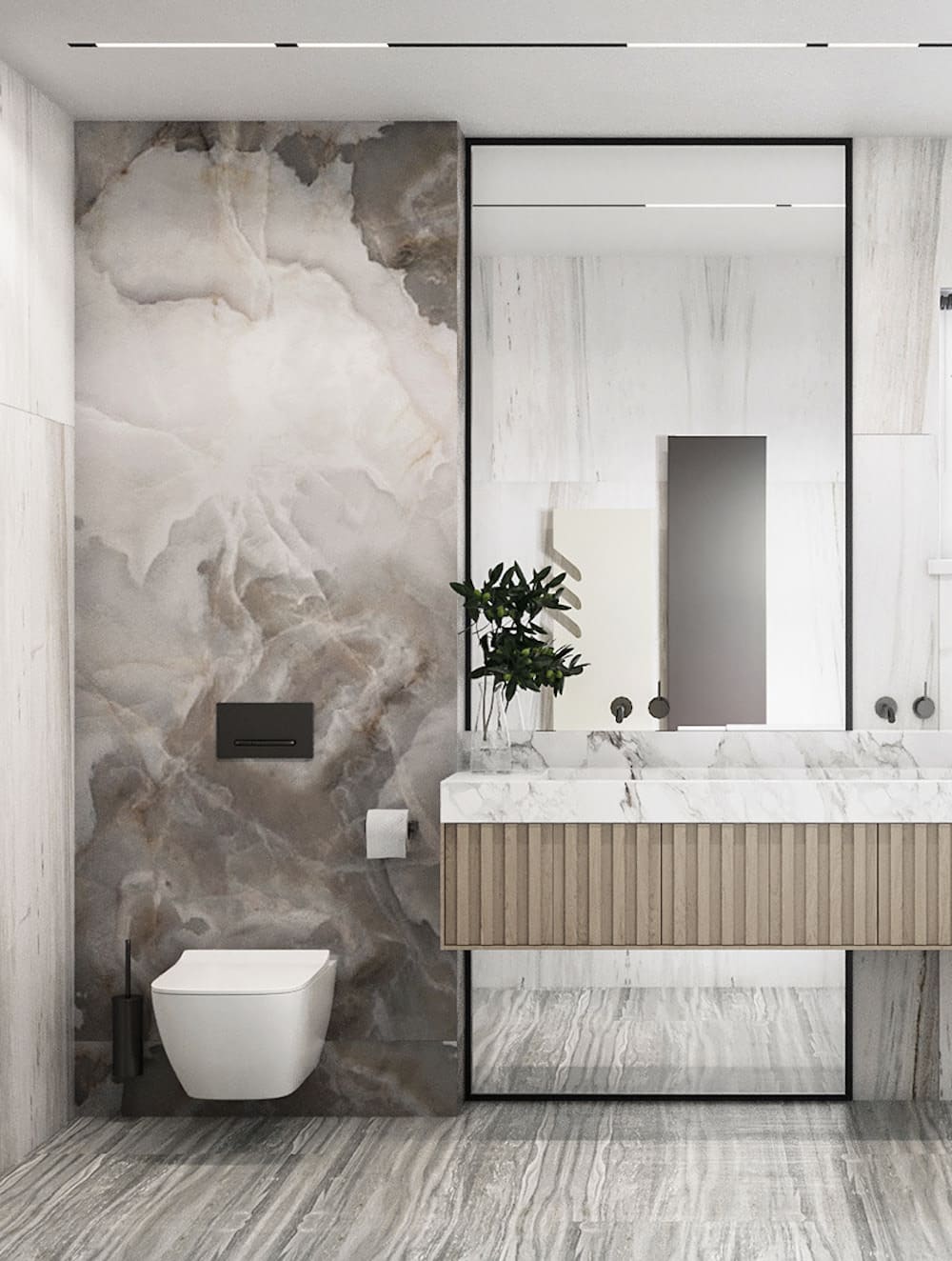 Маленькая ванная комната с мраморной плиткой