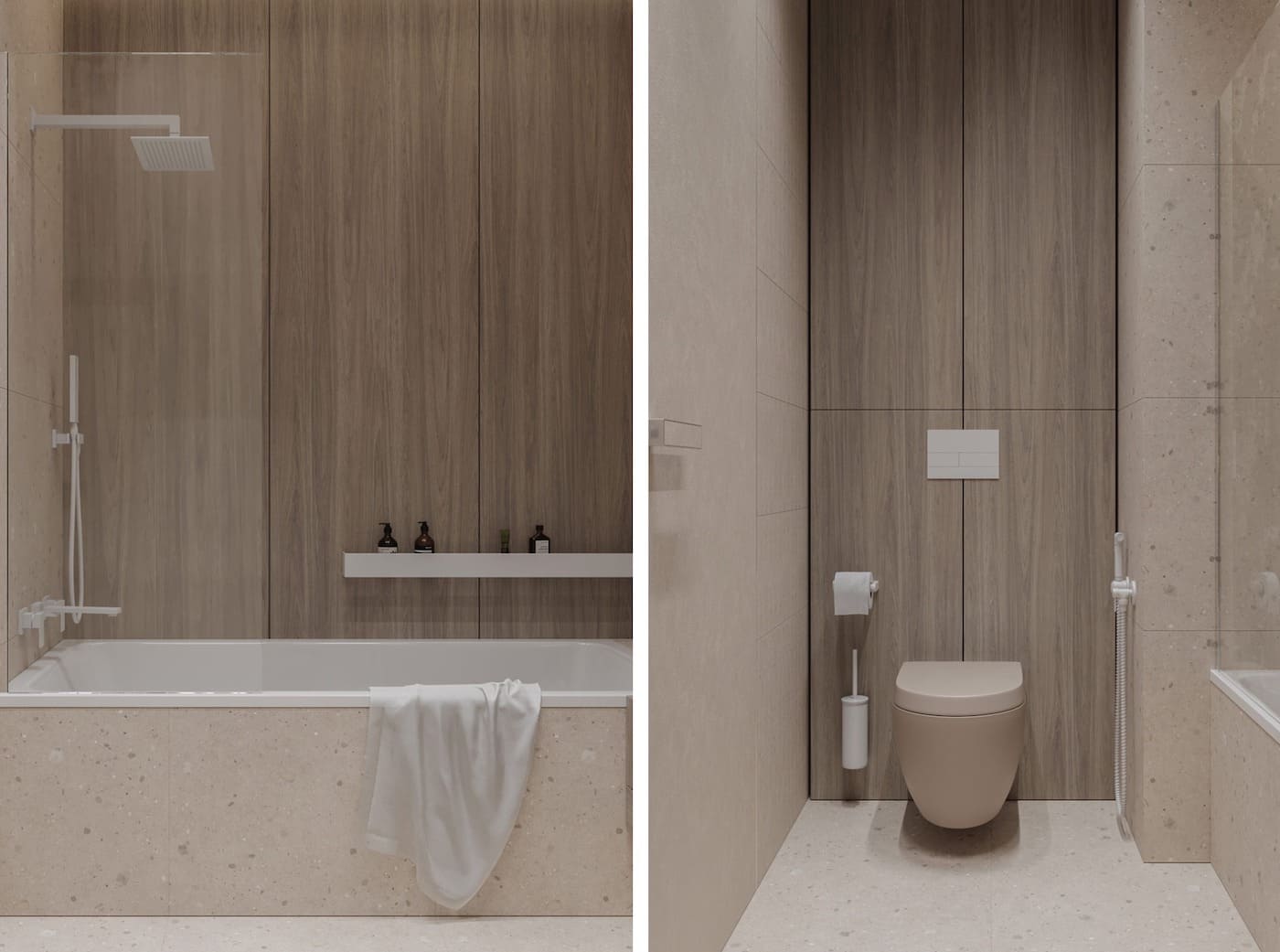 Маленькая ванная комната с деревянной мебелью