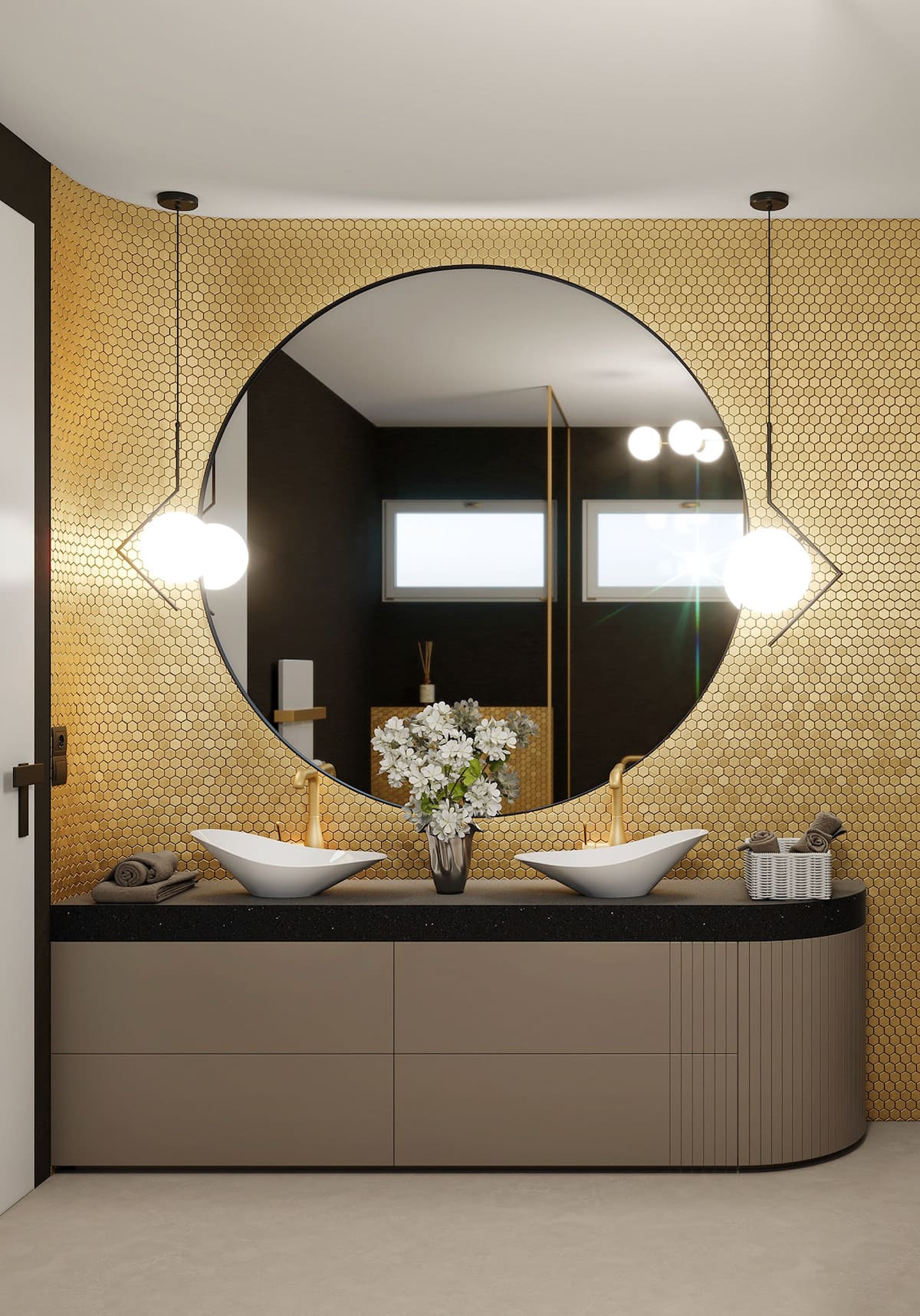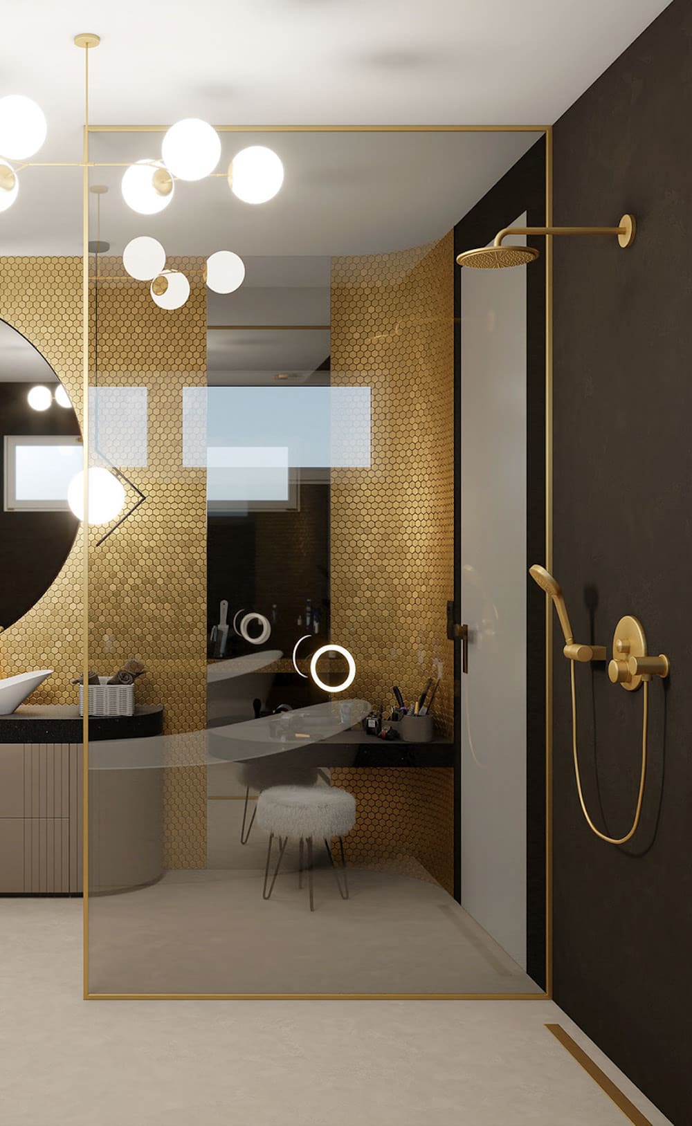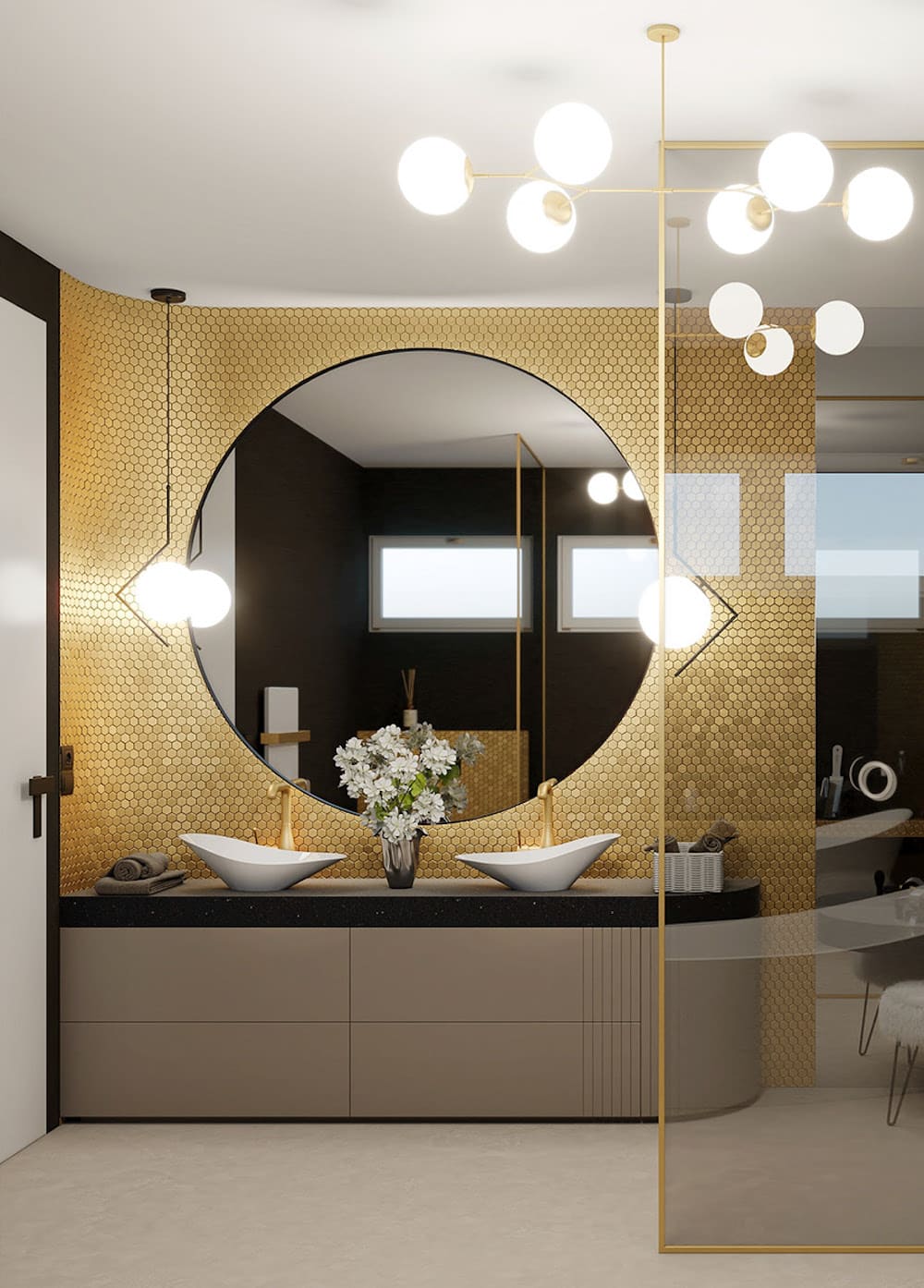 В дизайне ванной комнаты лучше всего использовать три оттенка, которые сочетаются друг с другом. Например, позолота и бронза способны подчеркнуть любое стилевое направление.