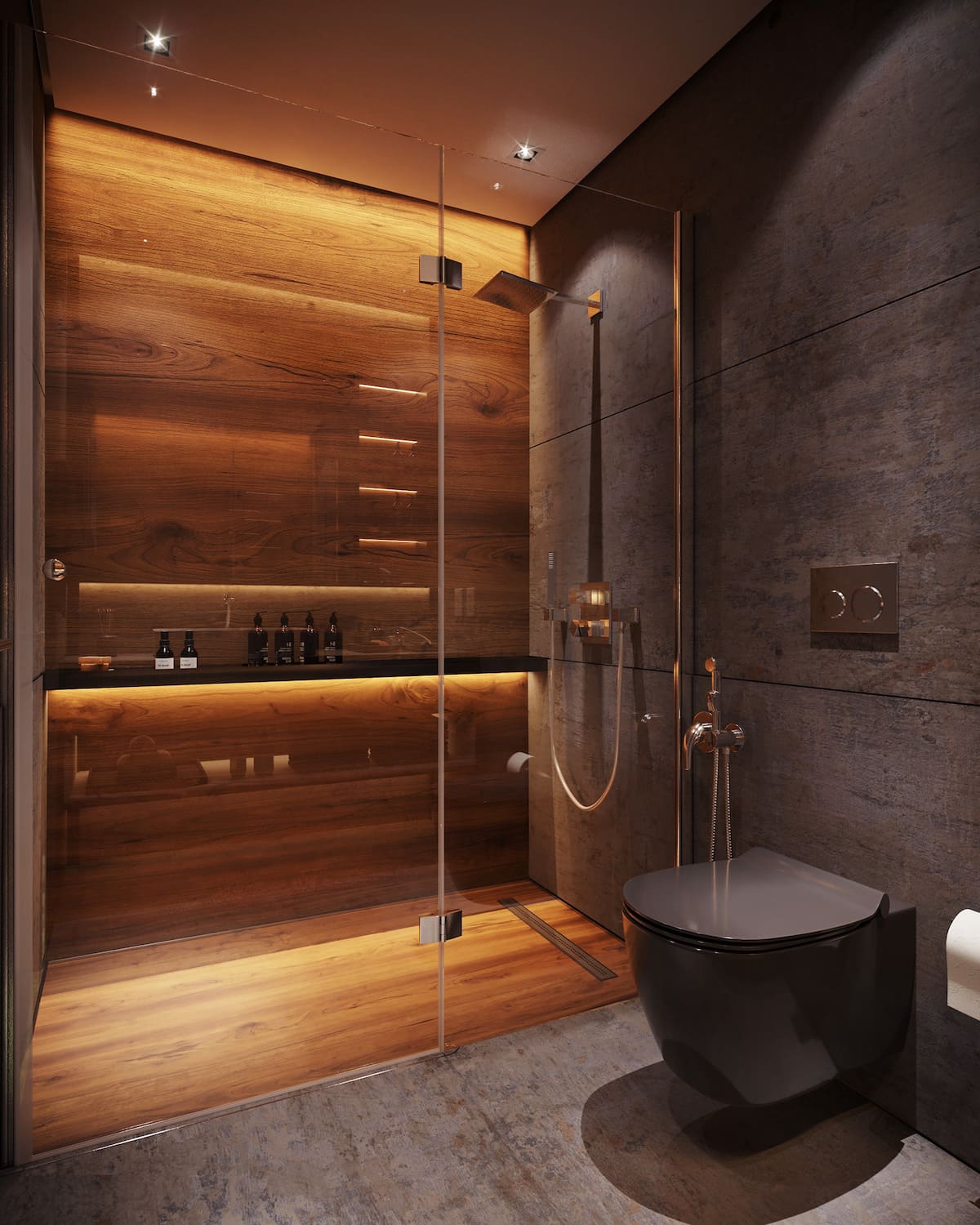 Ванная с деревянными элементамиИсточник happymodern.ru