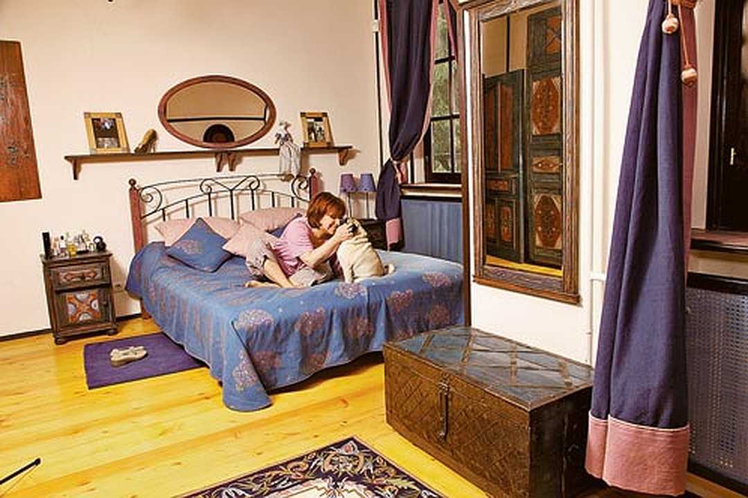 По сравнению с другими комнатами – помещение выглядит слишком просто. Стены покрашены в пастельные тона, на полу паркет.
