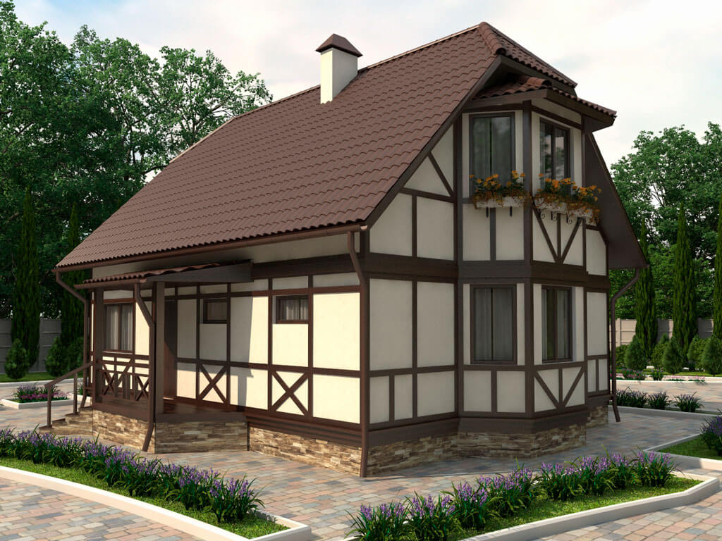 Компактный уютный коттедж в фахверковом стилеИсточник lesstroy.net