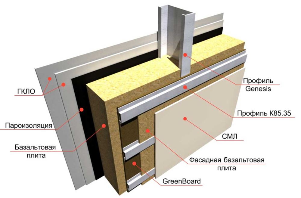 Наличие листовой черновой обшивки на внешних стенах обязательно. Она выполняет комбинированную функцию, обеспечивая защиту утеплителя и выступая в роли жесткой связи для элементов каркаса. Также прослойка из СМЛ или ЦСП выступает своеобразным демпфером, сглаживающим сезонные и температурные колебания конструкции и не позволяя им влиять на внешний вид фасада. Непосредственно для отделки могут применяться технологии как мокрых, так и вентилируемых фасадов, в этом плане ЛСТК выбор ничем не ограничивает.