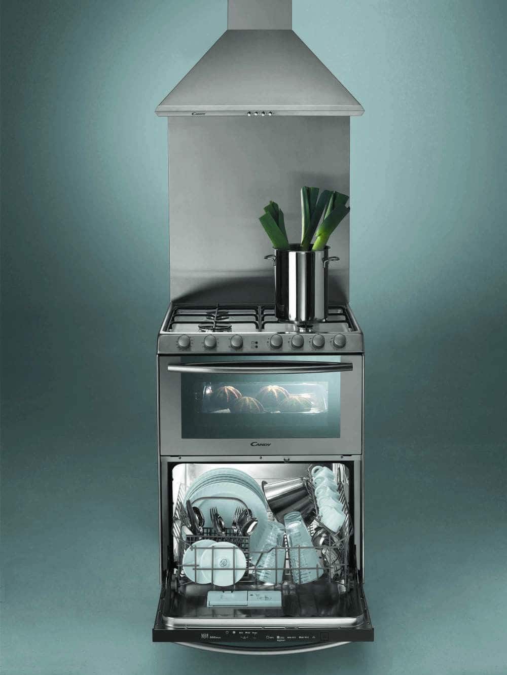 - Функционал. Если варочная панель в таких моделях будет полноценной, то посудомойка поплатится вместительностью — в ее бункер поместится не более 6–8 комплектов посуды. В духовке же, как правило, всего один противень. Скромный итог, учитывая предыдущий пункт.