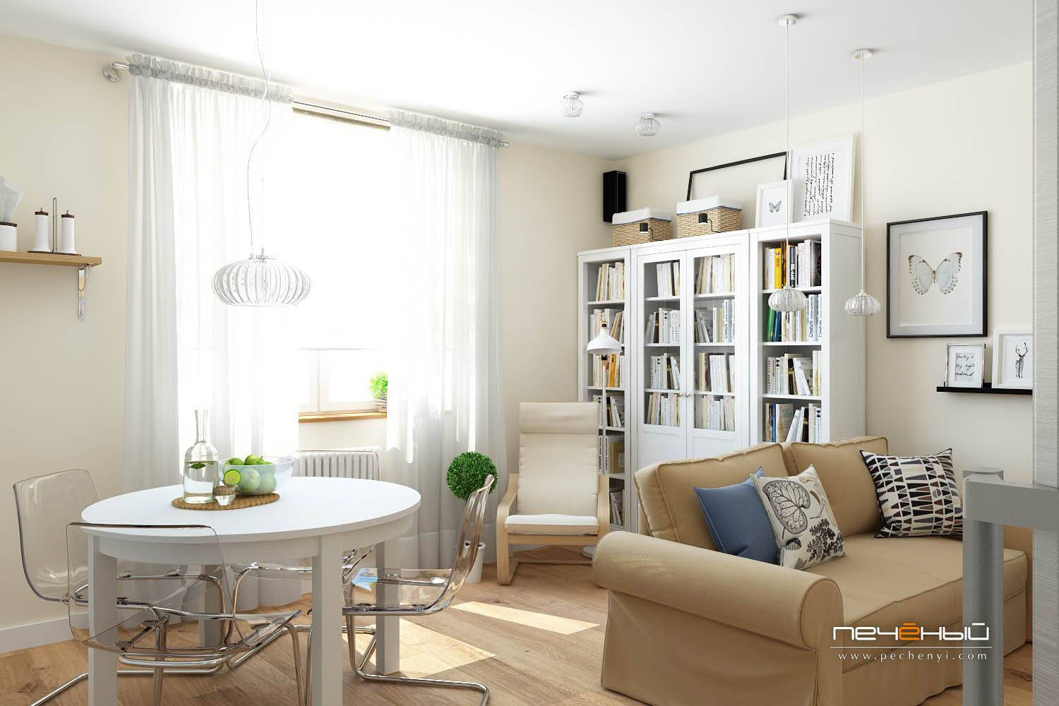 Скандинавский стиль прекрасно подходит совсем маленьким квартирам. Главное не скупиться с декором.