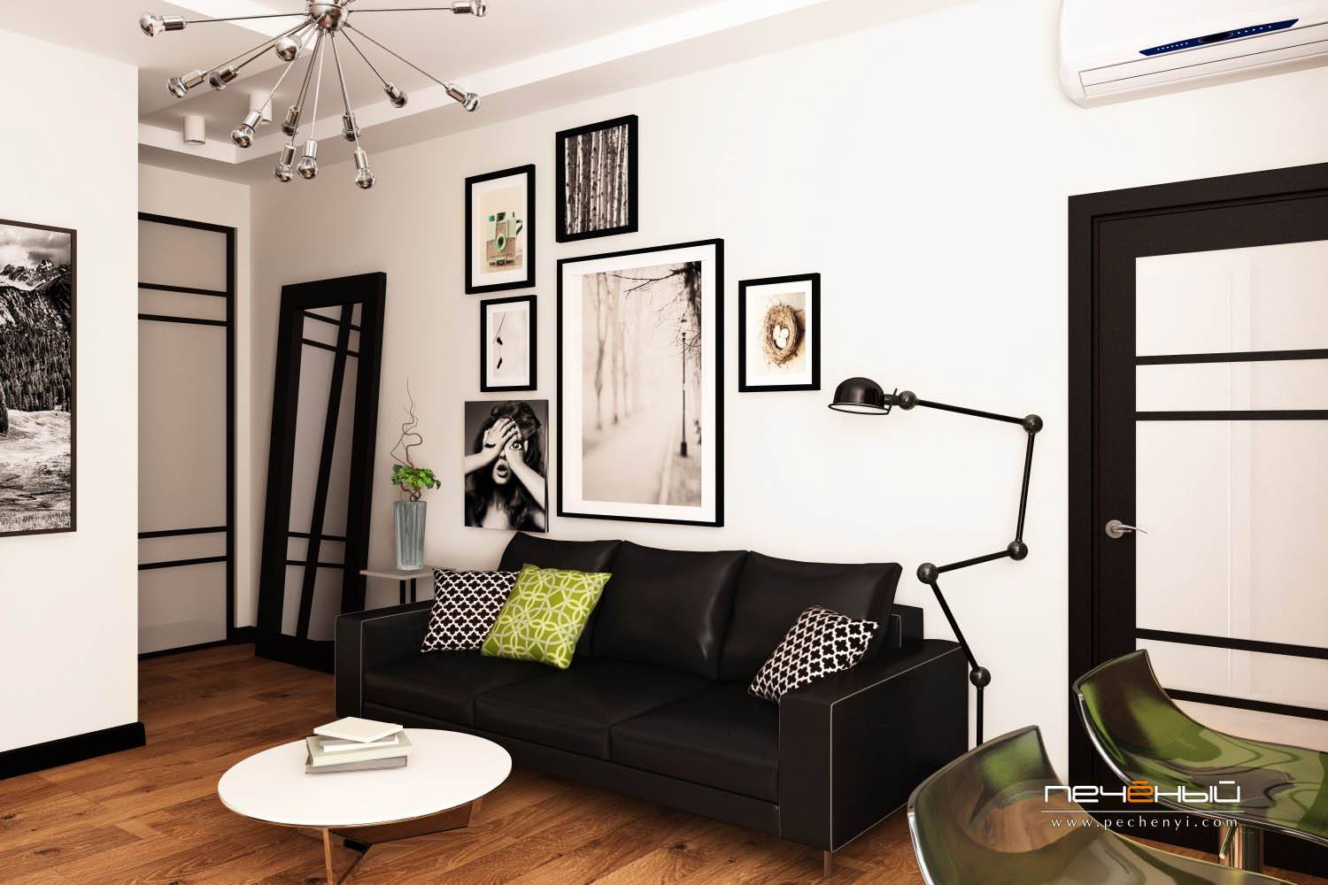- Низкоконтрастные. Здесь отсутствуют акценты, однако присутствуют предметы, выполненные в темных тонах. Если требуется к ним дополнение, можно использовать цветовые пятна, скажем, кресло.