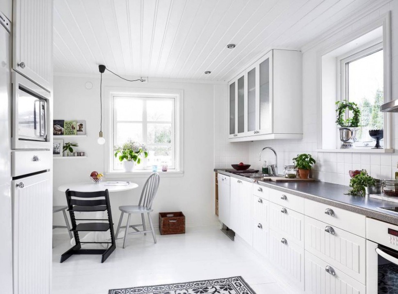Многие утверждают, что кухня в скандинавском стиле будет выглядеть крайне неуютной и враждебной. Но это не совсем так, потому что в соответствии с обычаями стран (Дании, Норвегии, Швеции), дизайн кухни может (и в некоторых случаях должен) включать световые завесы, брезентовые или хлопковые салфетки, а также комнатные цветы, которые придают комнате комфорт. Кроме того, растения могут быть размещены в подвесных горшках или на полке.