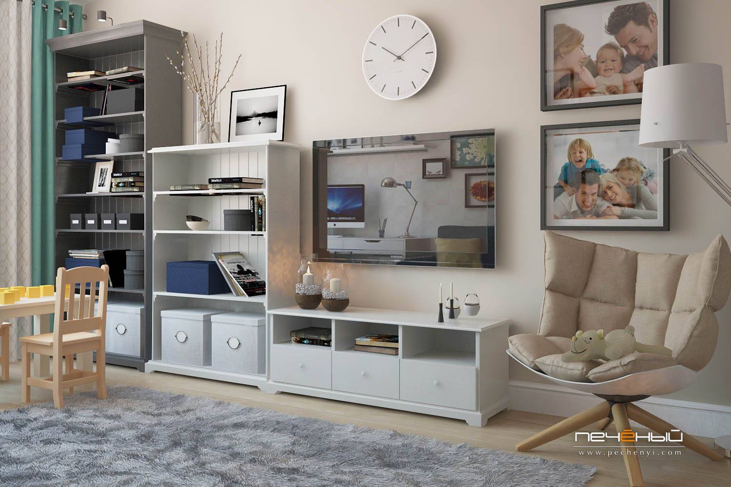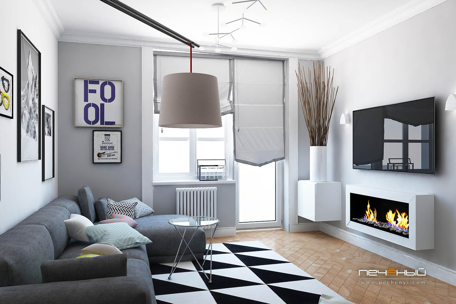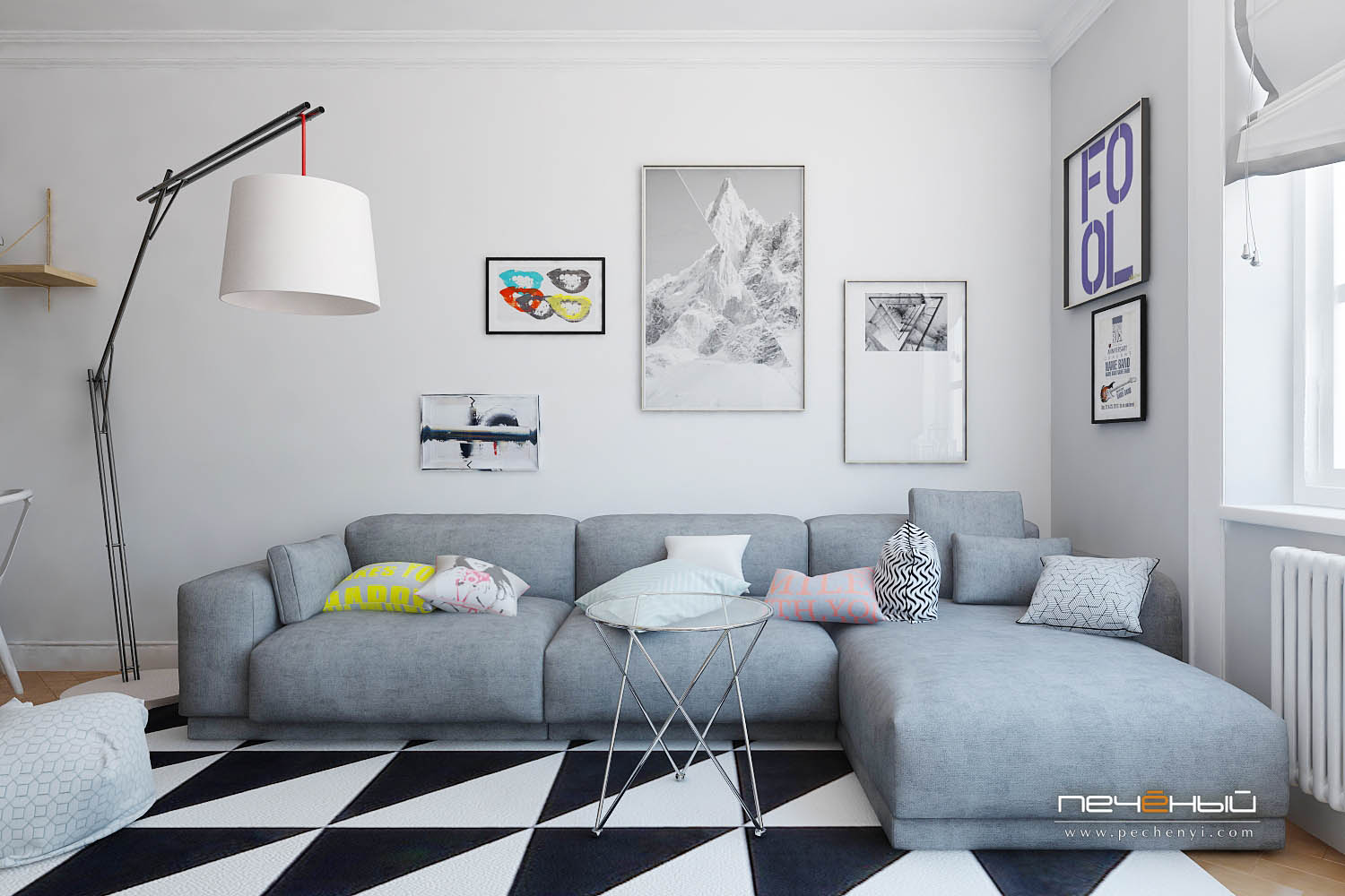 Сочетание белого и серого очень красиво и идеально подходит для этого стиля