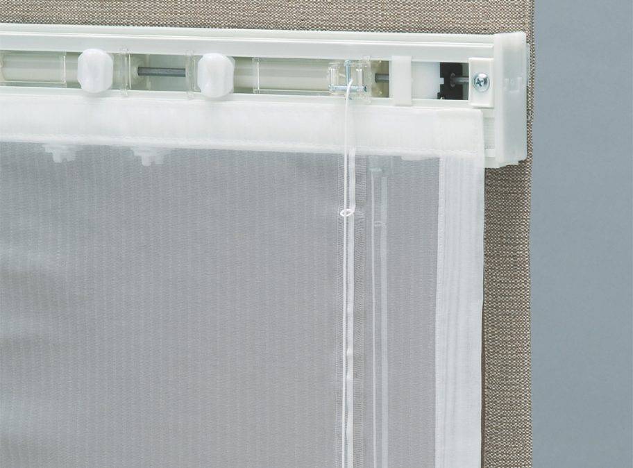 Для двойных штор используют двухслойный карниз, чтобы каждое полотно имело свое направление и могло свободно двигаться. Есть модели, в которых слои соединены друг с другом и размещены в направляющей.
