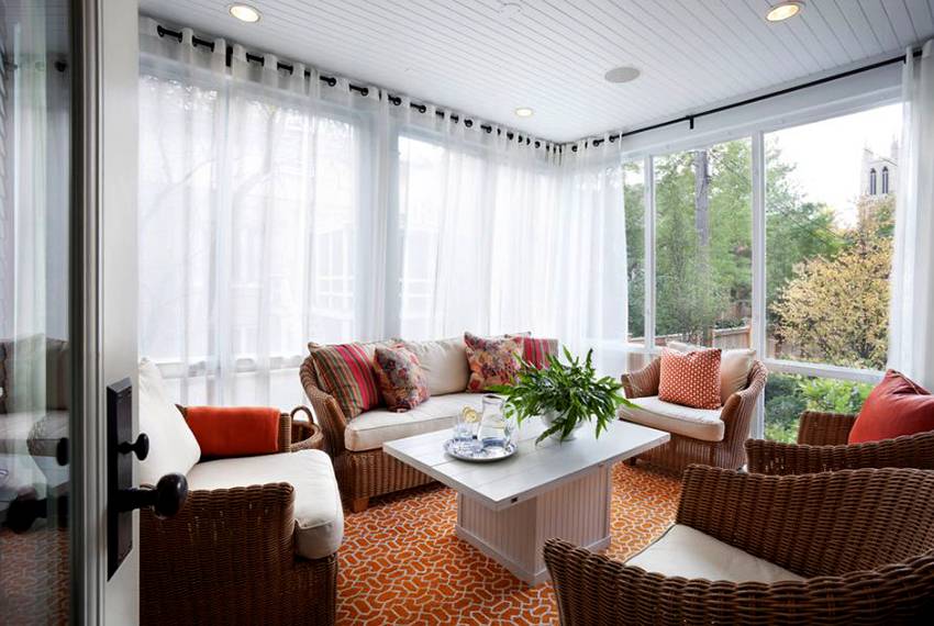 Продуманный по стилю вариант оформления придаст помещению особый шарм, а также защитит от солнца и скроет некоторые погрешности ремонта.