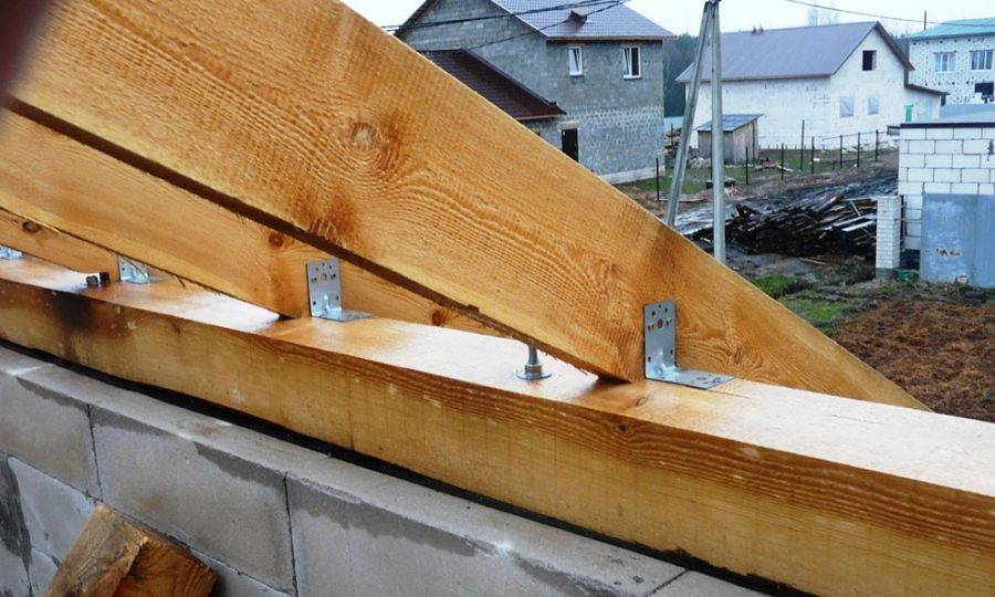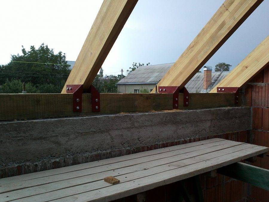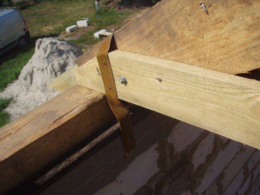 Узлы крепления стропил к мауэрлату укрепляют скобами, болтами или длинными гвоздями.
