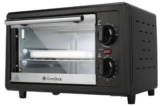 - Модели объемом от 9 до 12 литров вмещают в себя один небольшой противень, на котором можно приготовить еду на семью из двух человек. Преимуществом такой печи является ее компактность;