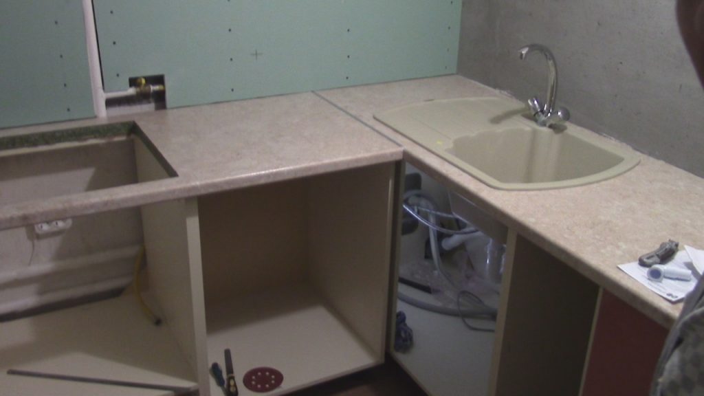 Сборка: е вростык столешницы кухни