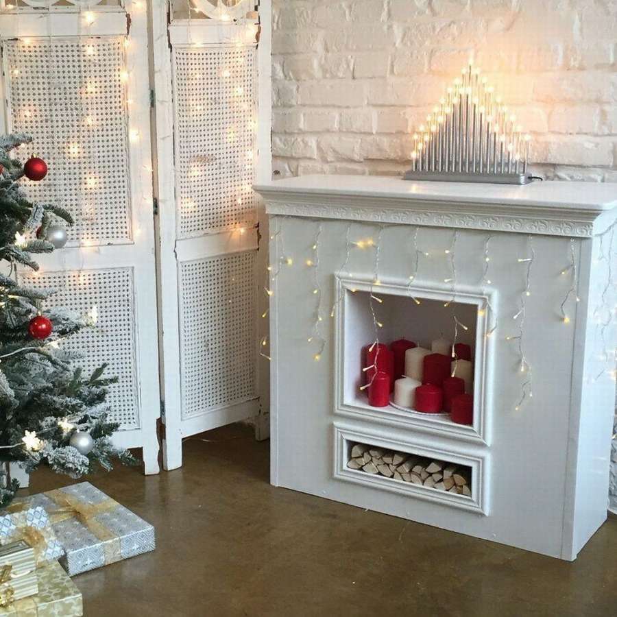 Например, декоративный фальш-камин из картонных коробок – ваш выбор, если нет времени маяться с материалом посложнее. Покройте картон белой краской для более аккуратного вида.