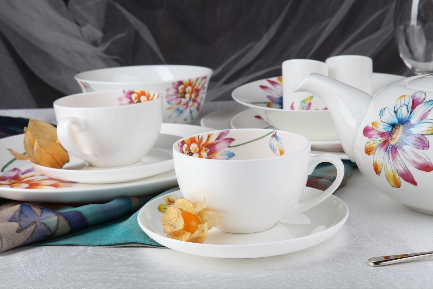 Но производители выпускают фарфоровые комплекты посуды также и разнообразно декорированные, способные удовлетворить любые вкусы. Существует два типа декорирования фарфоровой посуды: