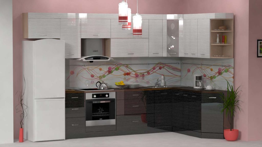 Такой вариант подходит ценителям нестандартных решений. В кухонной зоне появится настоящая картина, полотно, которое станет ярким акцентом. Можно выбрать панели с растительным орнаментом, панорамой мегаполисов, натюрмортом, живописным пейзажем горной местности или один из сотен тысяч других вариантов. Прочитайте как подобрать фартук для белой кухни с черной столешницей в этом материале.