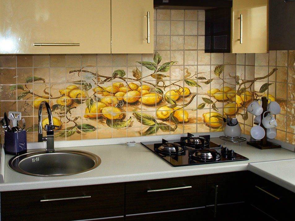 Панно, расписанные вручную, выкладывают с использованием крупной кафельной плитки для кухни. Плитку на панно для кухни расписывают, после чего обжигают и покрывают глазурью. В результате изделие получается схожим с тем, которое продается в магазинах.