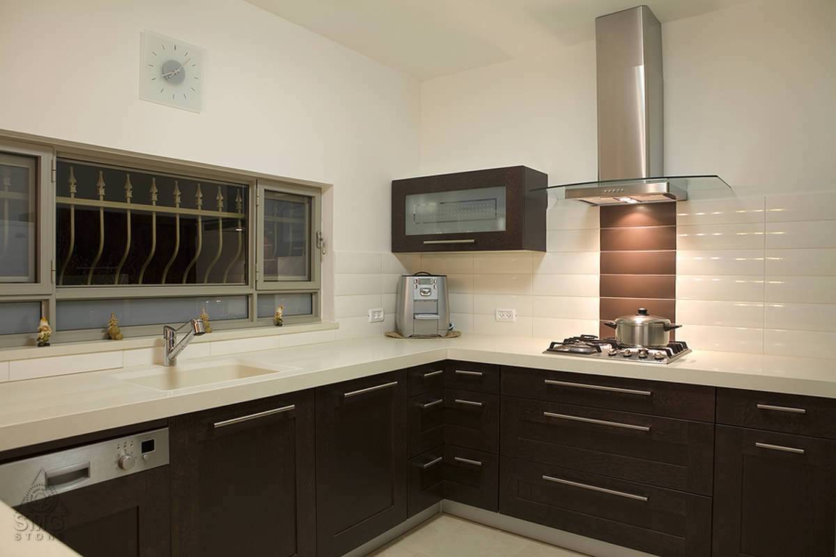 «К керамогранитному фартуку можно подобрать столешницу из того же высокопрочного материала».