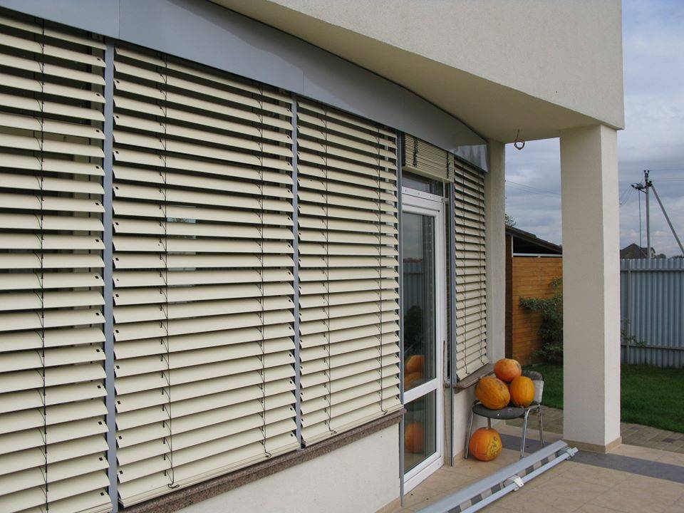 Короб, скрывающий ламели, оберегая привод от негативного воздействия погоды и пагубных загрязнений, предоставляет возможность превосходно вписать жалюзи в единый дизайн дома, благодаря разнообразию форм и цветовых решений. Материалы, которые используются при изготовлении наружных жалюзи устойчивы к коррозии, что делает их надёжность и крепость основными преимуществами данного вида. Карниз состоит из оцинкованной стали, а основное полотно из алюминия. Сами ламели могут различаться по форме и величине ширины: 50, 65, 70, 80, а также 90 мм, состоя из особого сплава, обладающего эластичностью.