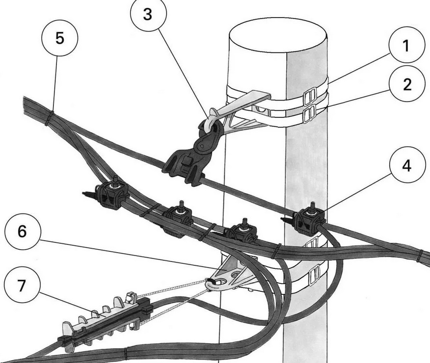 Для прокладки самонесущего провода используют следующие крепежные элементы: