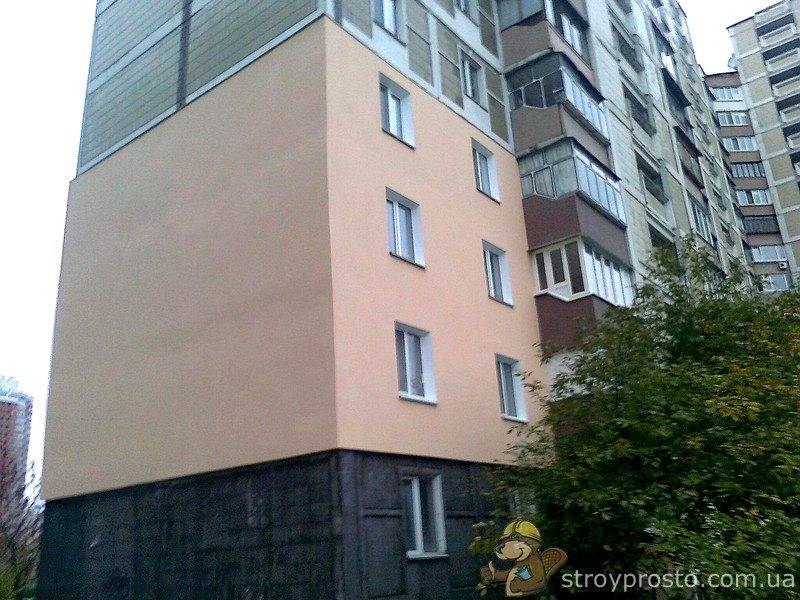 Утепляются пенопластом не только частные дома. Практикуется и утепление части стены, принадлежащей отдельной квартире. Что мы и наблюдаем на фото.