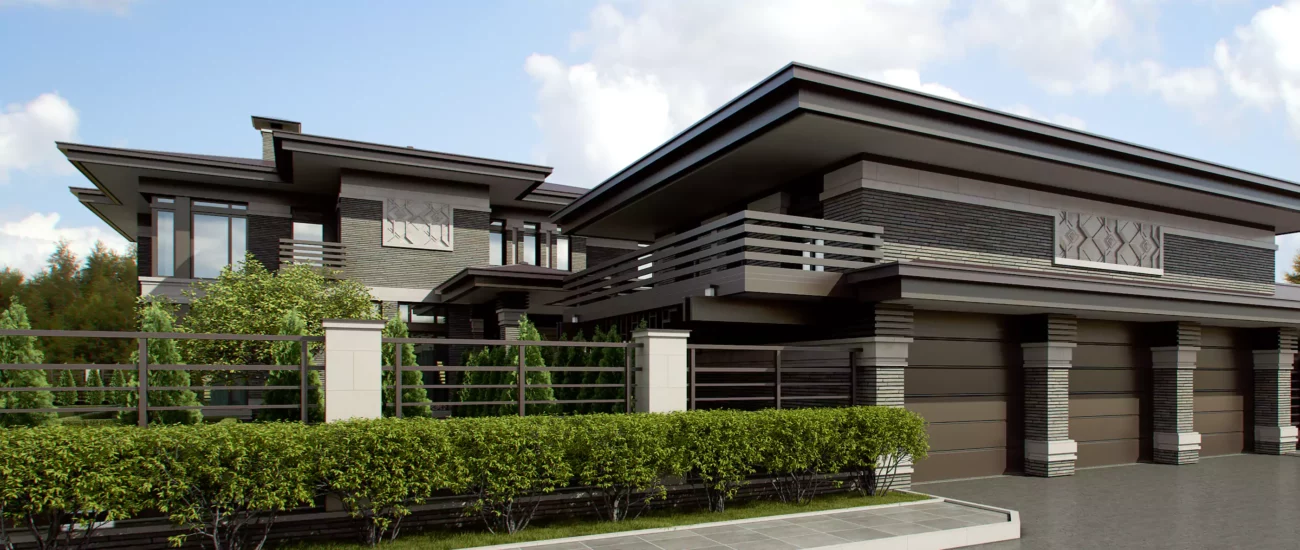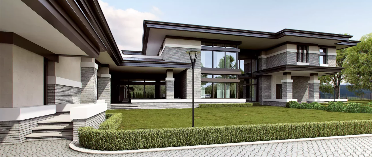 Современный дизайн экстерьеров использует целый арсенал отделочных покрытий и приемов декорирования, чтобы фасад загородного особняка смотрелся аккуратно и привлекательно.