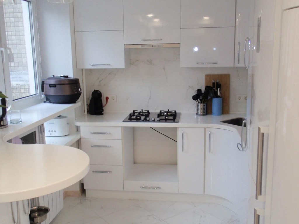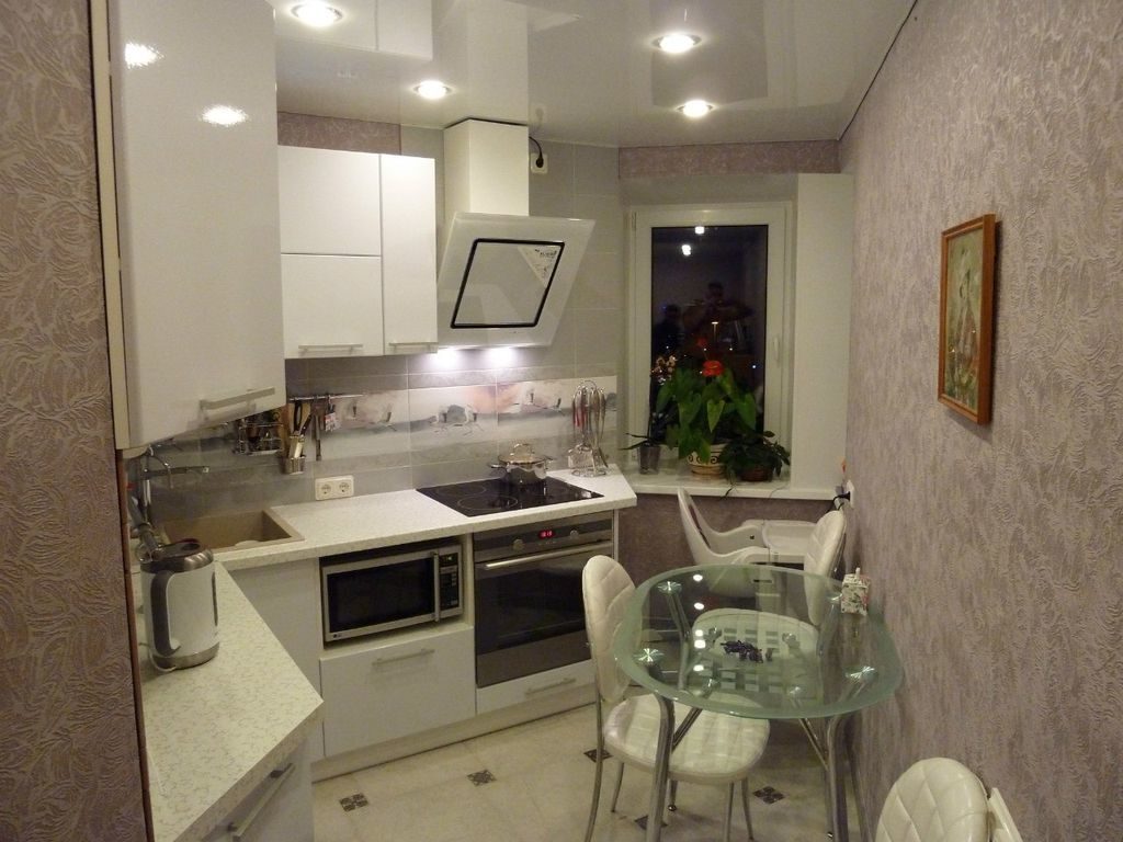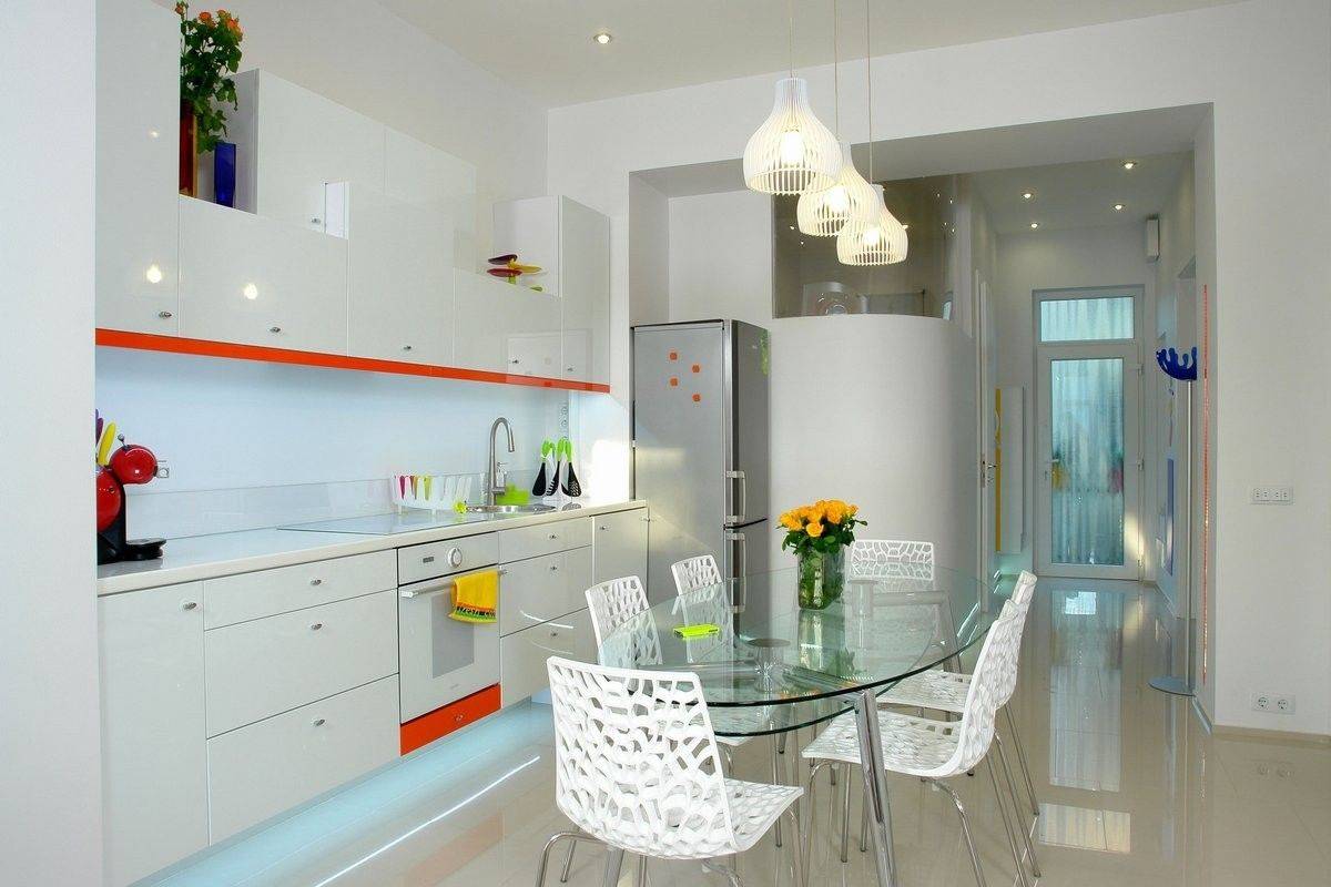Для оформления кухни в минималистичном стиле рекомендуется использовать светлые оттенки, это еще больше увеличит кухню. Важным атрибутом будет являться освещение. Сочетать глянцевую кухню нужно с большим обилием света.