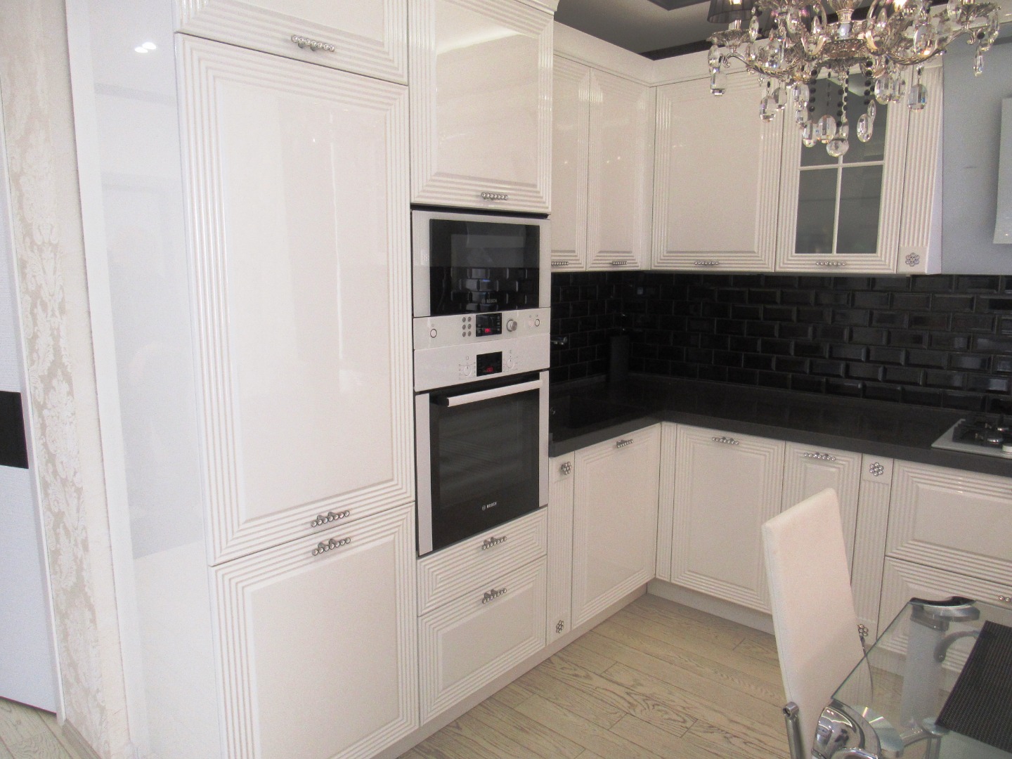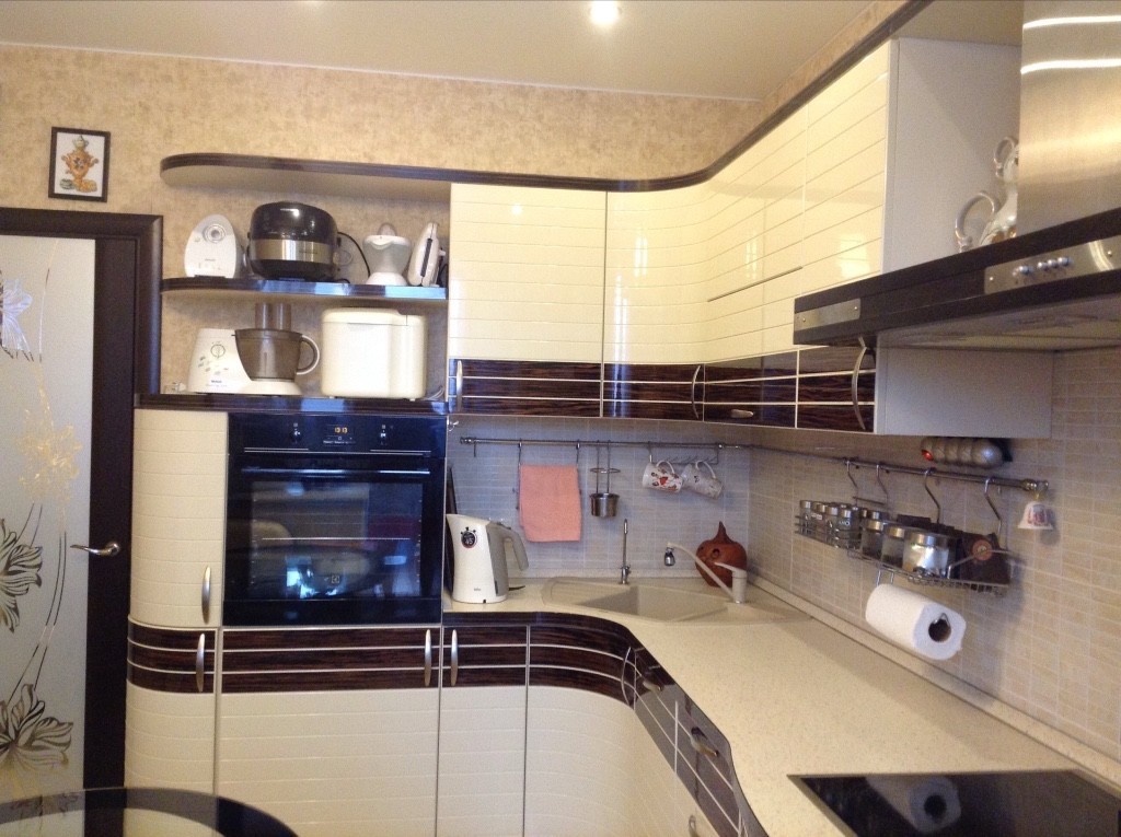 - С акриловым покрытием, создающим глубокий экстраглянцевый эффект. Подобные фасады внешне очень привлекательны, способны визуально увеличивать пространство, но довольно сложны в уходе.