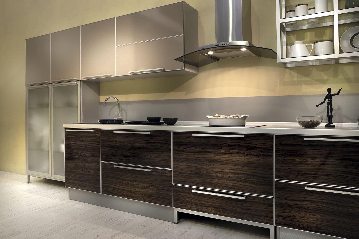 Очевидно, что требований к материалам, из чего лучше делать кухню, много. Но и подходящих материалов существует немало, не говоря об огромном количестве их комбинаций. В производстве чаще используют МДФ, ДСП или ЛДСП, реже дерево, стекло и алюминиевый профиль с наполнителями. Эксклюзивным вариантом считается металл.