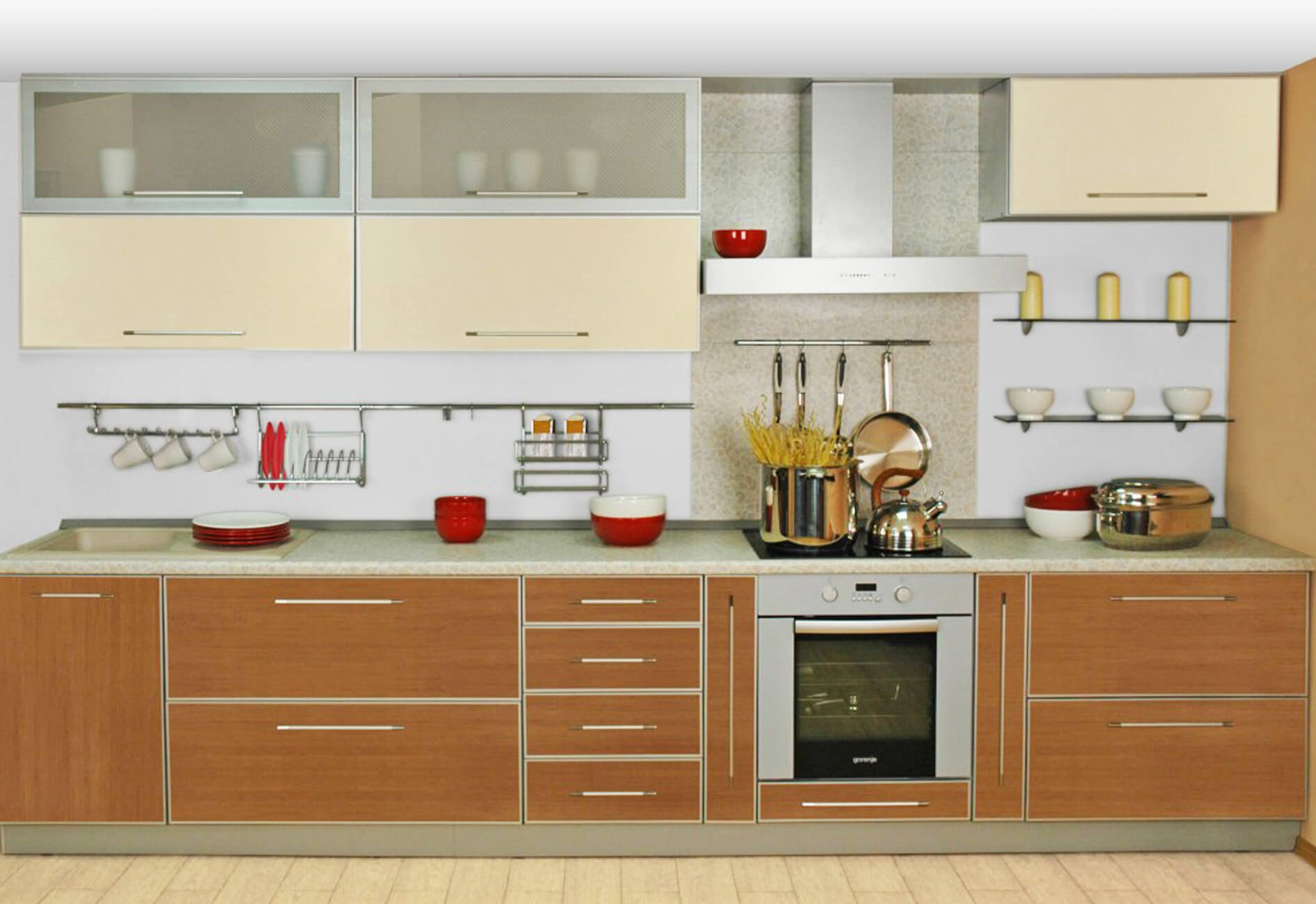 С алюминиевой кромкой. Что представляет собой такой гарнитур? Дверцы шкафов могут быть выполнены из практичного МДФ, ДСП, дерева и алюминиевой рамки, которая прибавляет прочности и стилевой особенности гарнитуру.