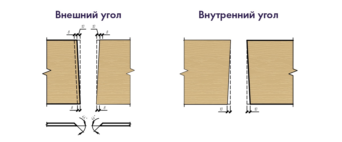 Если вам нравится дизайн с отделкой углов, а цена этих самых углов не нравится (намного дороже), есть вариант — распилить ту же доску вдоль (того же или другого цвета), покрасить срез и соединить их на углу саморезами. Понятно, что при ближайшем рассмотрении этот вариант проиграет в эстетике, но если бюджет ограничен — неплохой способ сэкономить.