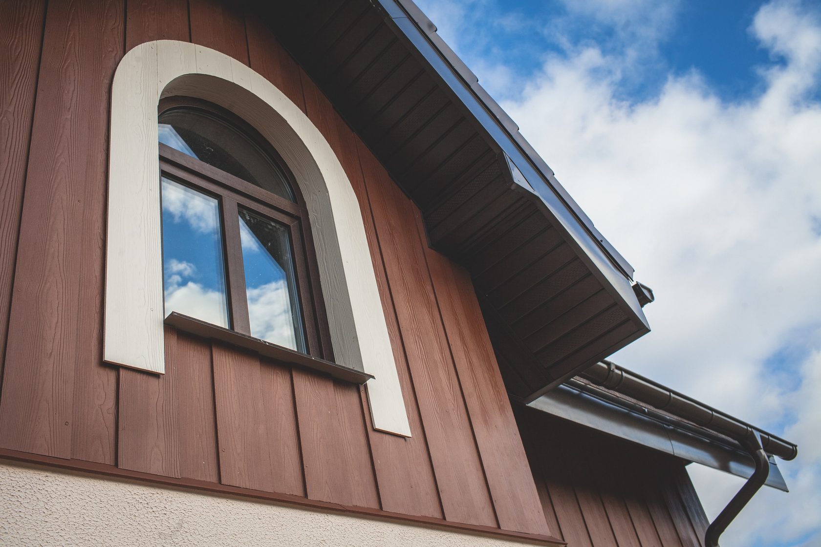 Особенностью сайдинга от этого производителя является небольшая ширина панелей и их малый вес. Это позволяет использовать их для отделки фасадов, имеющих большое количество окон.