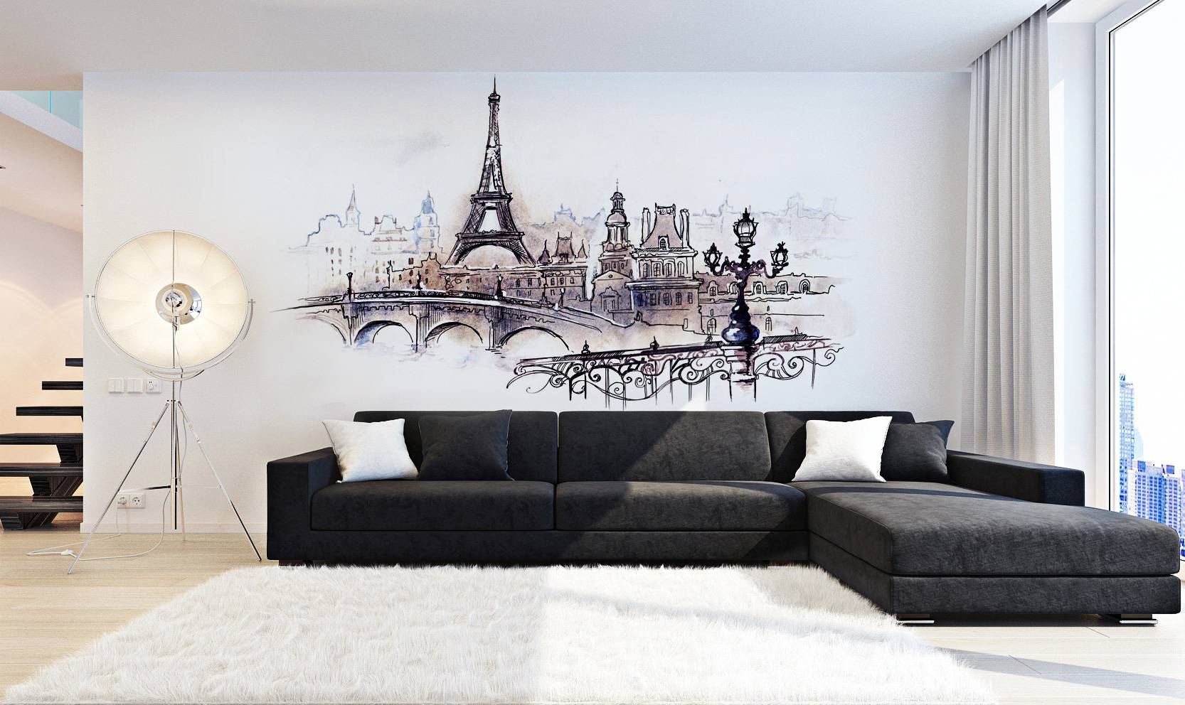 Современные требования к дизайну помещений рекомендуют использовать в этом случае не цветные, а черно-белые фотообои.