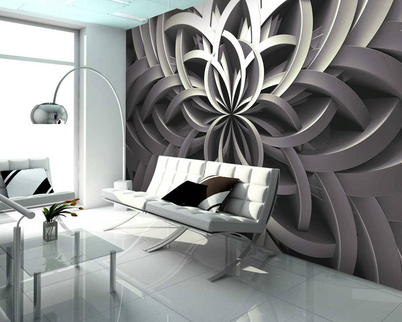 Важную роль играет цвет в выборе обоев с эффектом абстракции: часто используют черно-белую гамму, монохром или сепию.