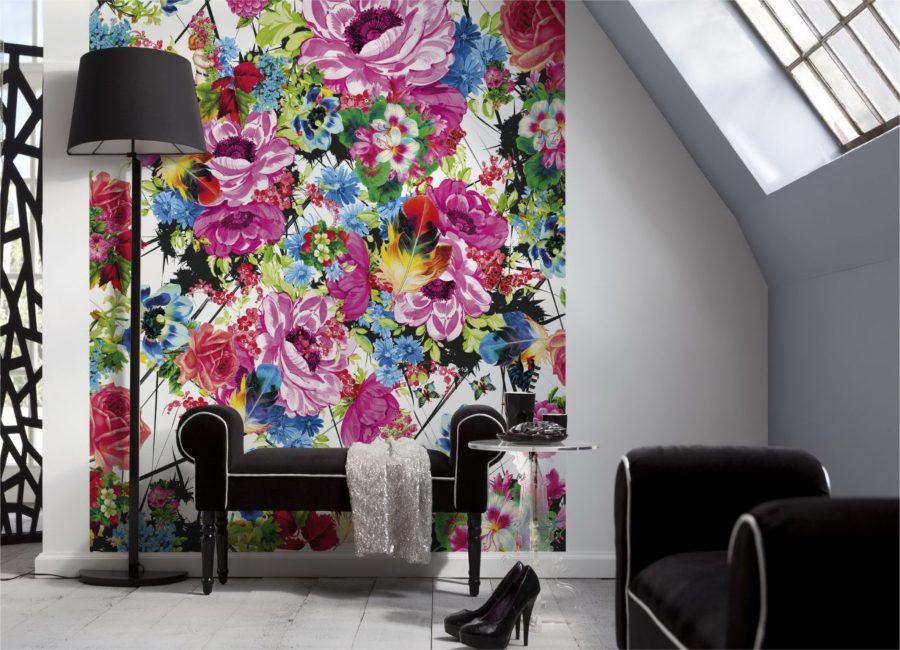 Обои с цветочным рисунком могут быть контрастными, с нанесением блесток, выполненные в определенной стилистике. Привлекательно смотрятся и акварельные материалы, которые могут, как принять акцент на себя, так и выступить гармонично с элементами интерьера ненавязчиво.