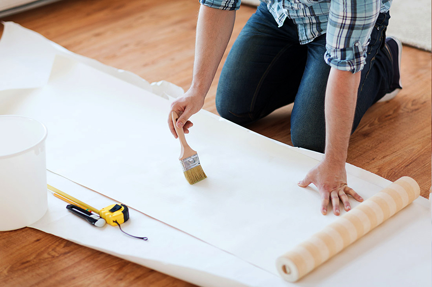 Следующим этапом является подготовка клеевого состава. Он наносится на стену и на обойный фрагмент. Последний не должен пропитаться, так как это может привести к деформации и потере прочности изделия. Если фотообои представлены рулонными изделиями, наклеивание отдельных полос выполняется слева направо. В случае квадратных элементов первым фиксируется левый нижний угол. Движение продолжается к правому нижнему углу, после чего наклеивается второй ряд в обратном порядке.
