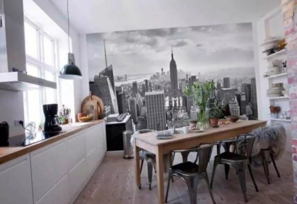 Интересные варианты фотообоев на маленькую кухню