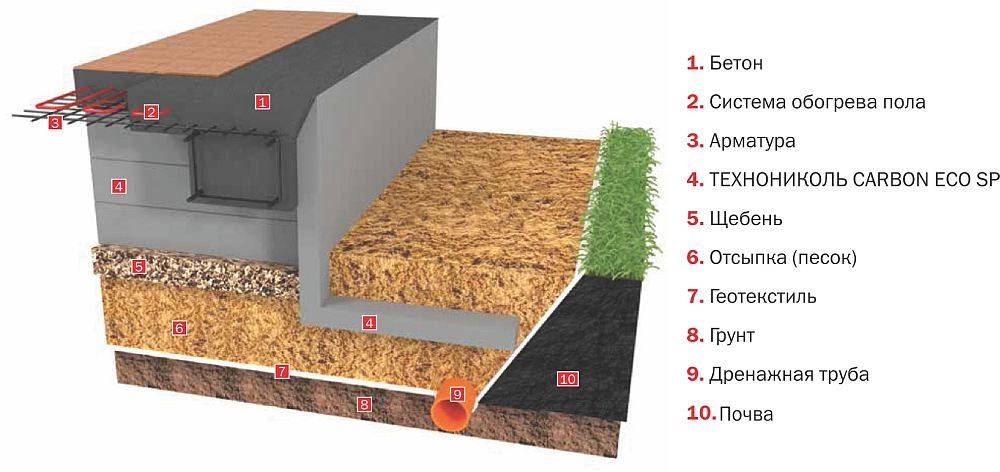 Несмотря на единые требования технологии (наличие плотной подушки из песка и щебня, обязательная гидроизоляция подошвы и армирование конструкции, выбор толщины плиты в пределах 10-40 см, соответствие ГОСТ Р 54257-2010 и другим строительным нормативам) фундаменты такого типа могут иметь разную глубину заложения и другие отличия.