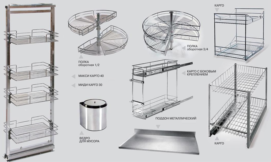Фурнитуру для кухни условно делят на 3 группы: