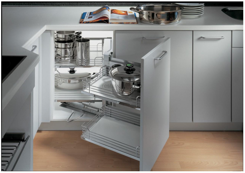 - Системы карго — это механизм представляет собой выдвижной ящик, определенной формы, который крепится непосредственно к имеющейся мебели и используются преимущественно на кухне.