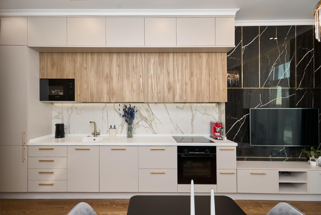 - вы можете разместить большое количество встроенной техники на кухонном пространстве;