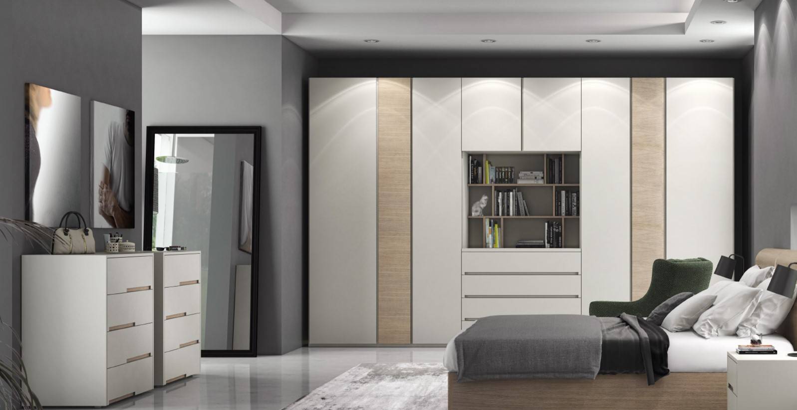 Стильный белый гардеробный шкаф в спальне